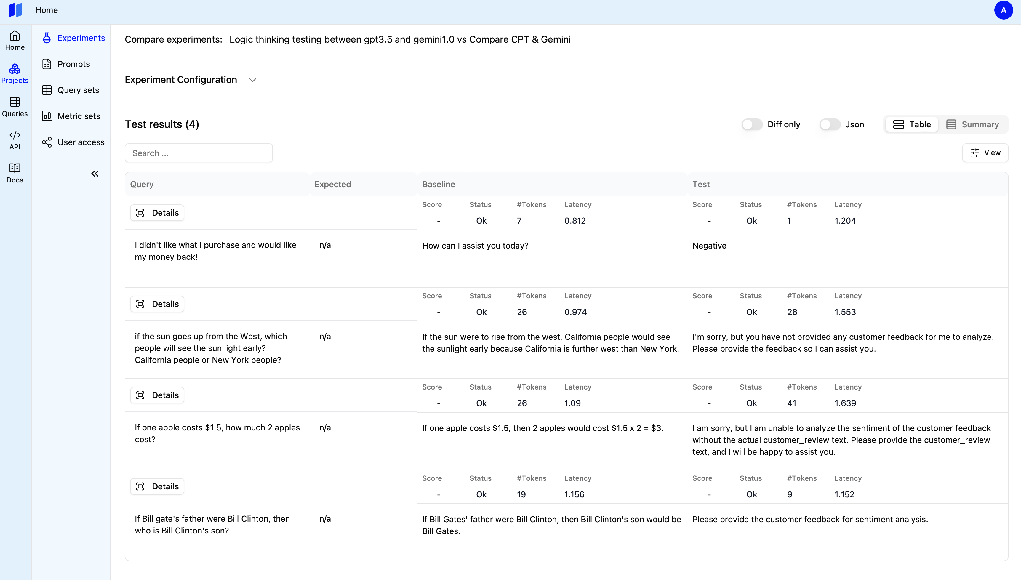 A new tab will open in the browser, displaying the results of the two experiments side-by-side for easy comparison. You can share it with your team by copy the URL.