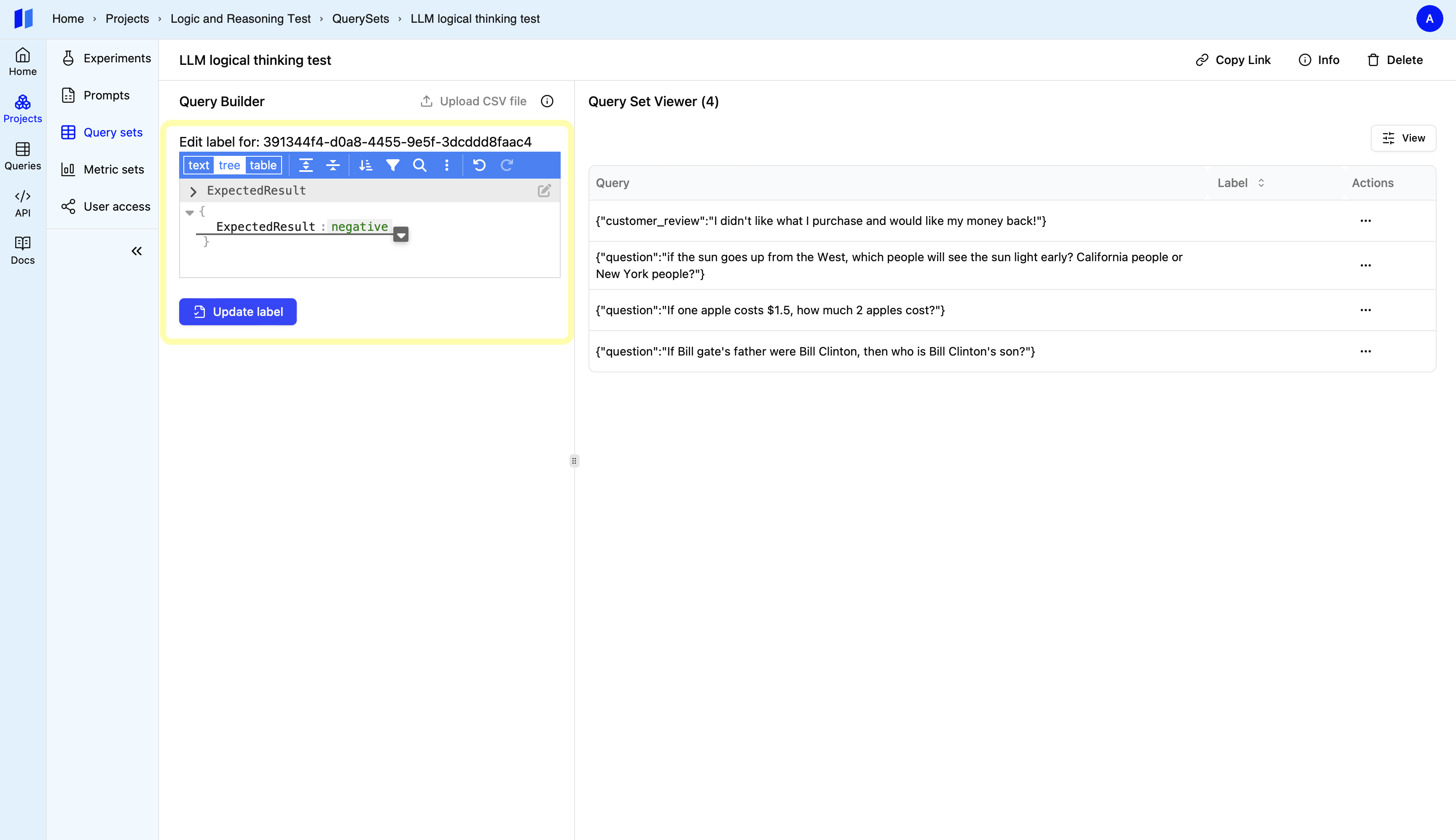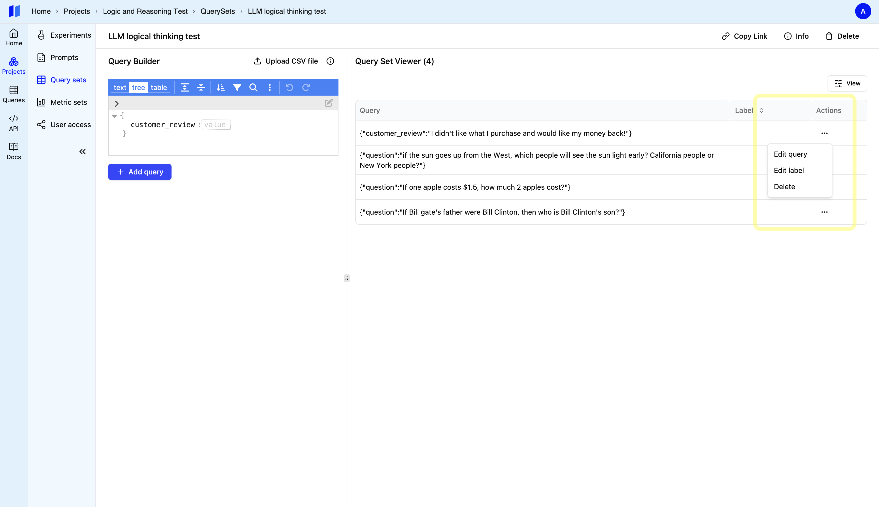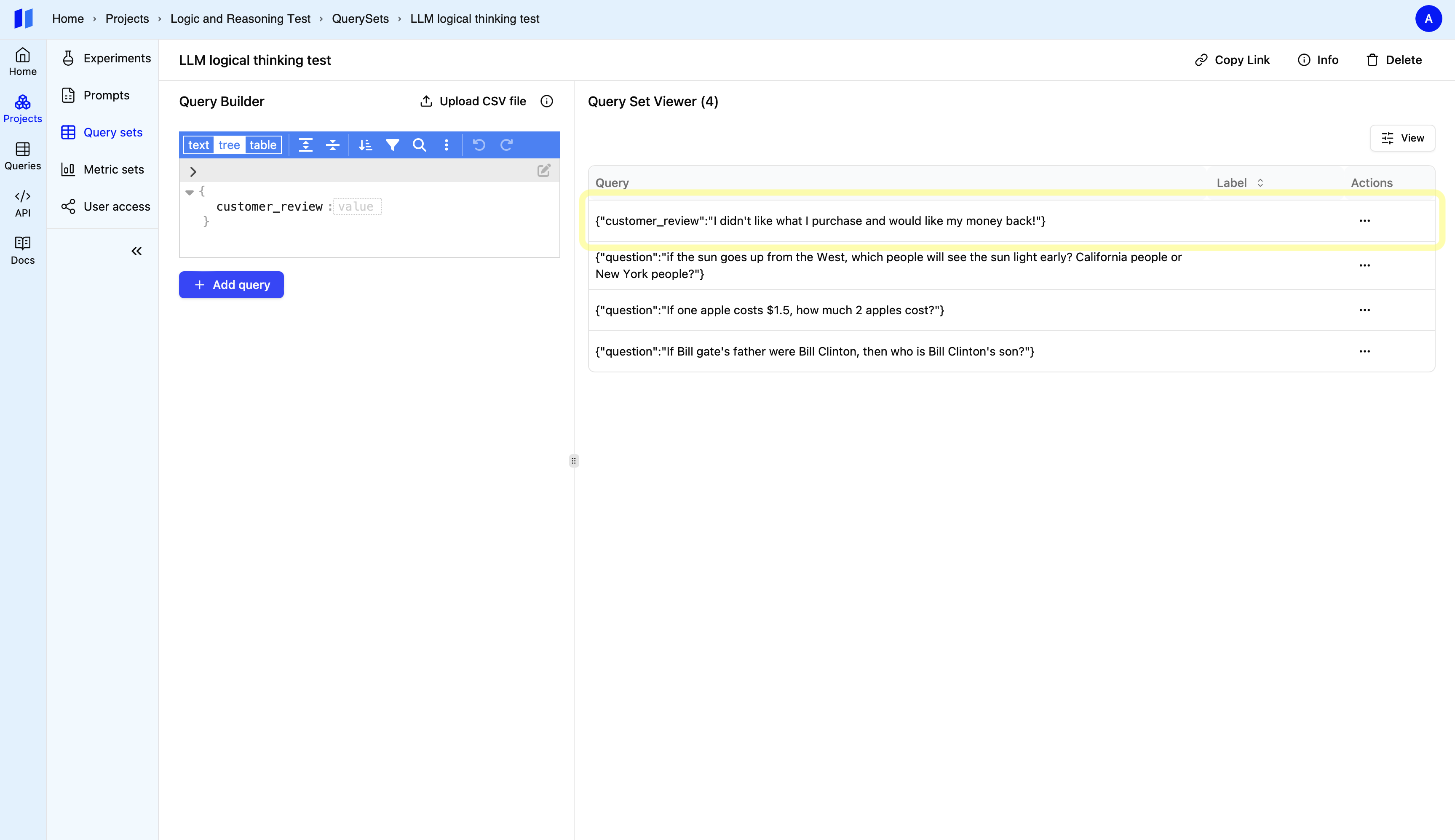 After adding your test case. Click the query set’s name beside the “Add to Query Set” button. This will open the query set.